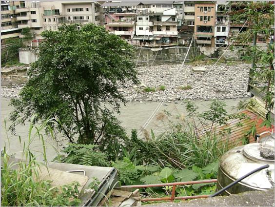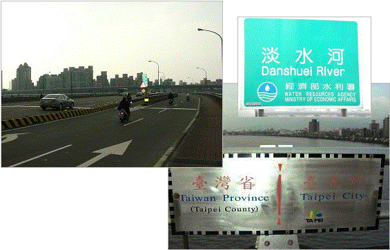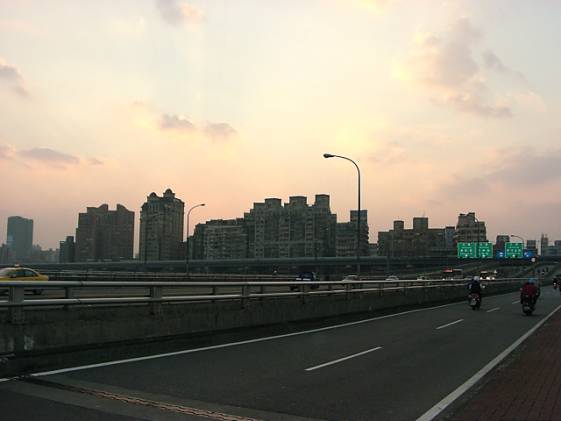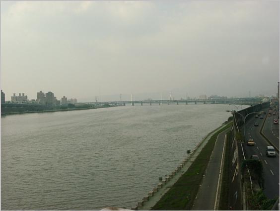 橋の向こうには目的地:台北縣三重市が、右手には淡水河が見える。 |