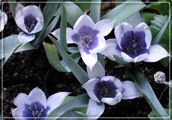 原種系のチューリップなので非常に小ぶりですが、白とブルーの色合いが気に入って